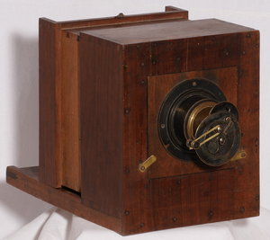 Cette chambre est composée de deux caisses en bois qui coulissent l'une dans l'autre afin de permettre de réaliser la mise en point. Elle est dite "à tiroir".