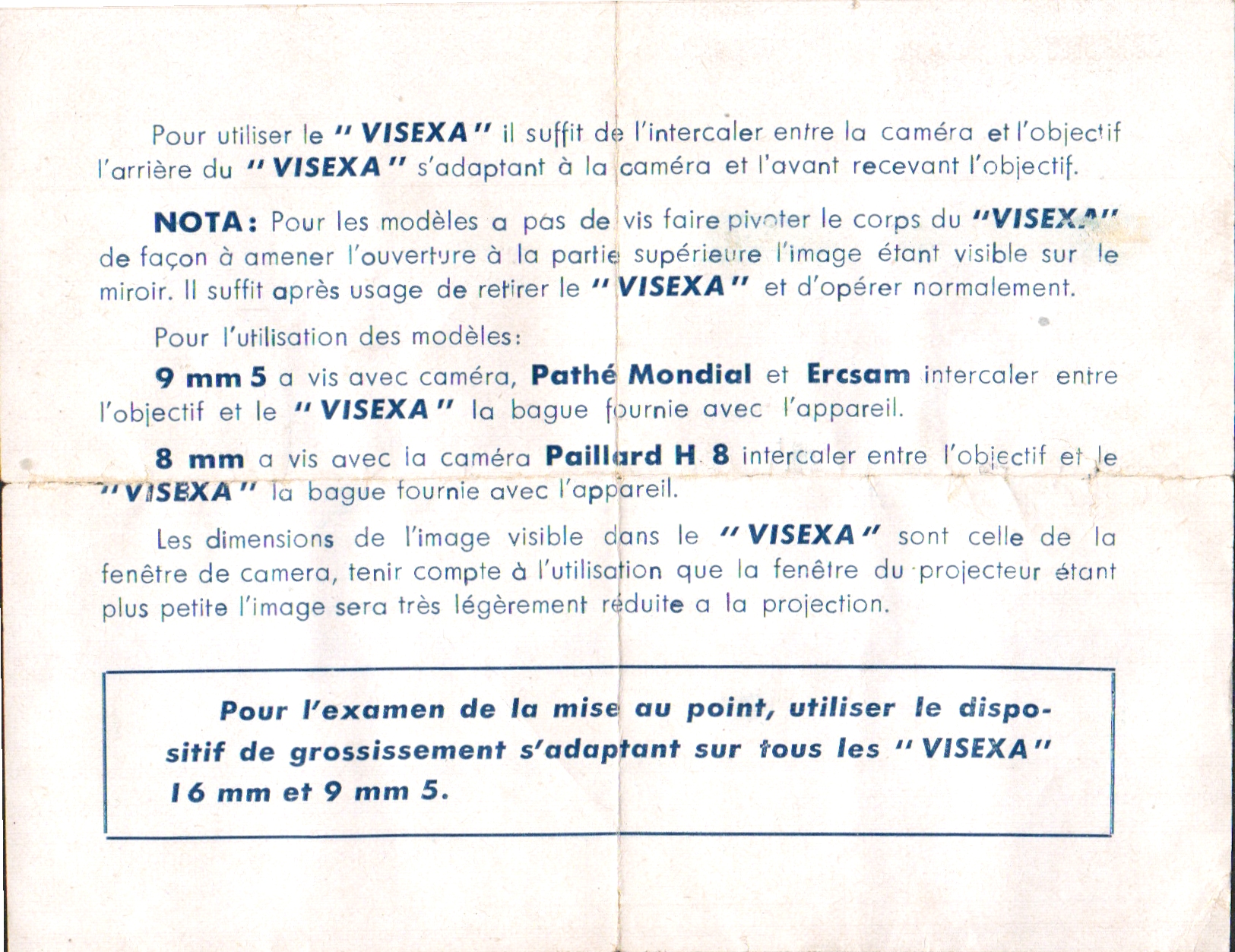 Ce viseur Visexa Erem est utilisable avec une caméra 9,5 mm Ercsam à objectif à baïonnette.