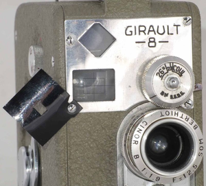 Cette caméra pour film 8 mm est richement équipée. Outre une tourelle pour 2 objectifs, elle comporte l'exposition TTL grâce à une cellule couplée par l'intermédiaire du dispositif situé au-dessus de l'objectif supérieur (celui qui est utilisé pour la prise de vue).