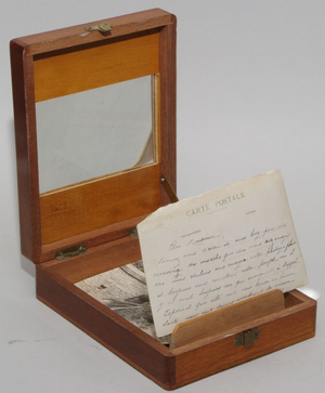 La photographie ou la carte postale à observer se place sur un support réglable d'avant en arrière pour faire la mise au point.