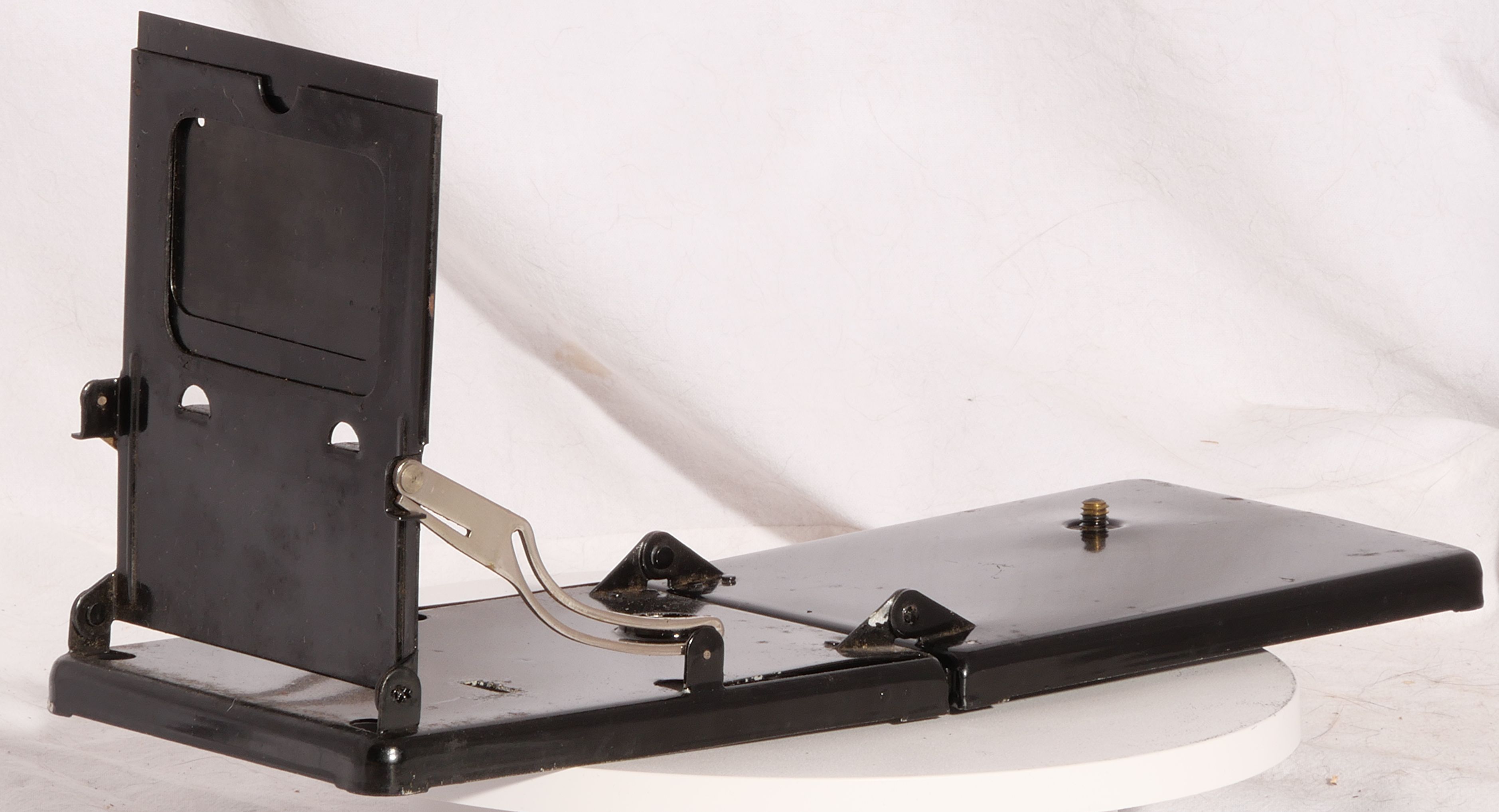 Autre accessoire de la caméra Pathé-Baby, le PathéSolar est une boussole avec un viseur qui permet de vérifier les ombres présentes sur l'image cadrée.