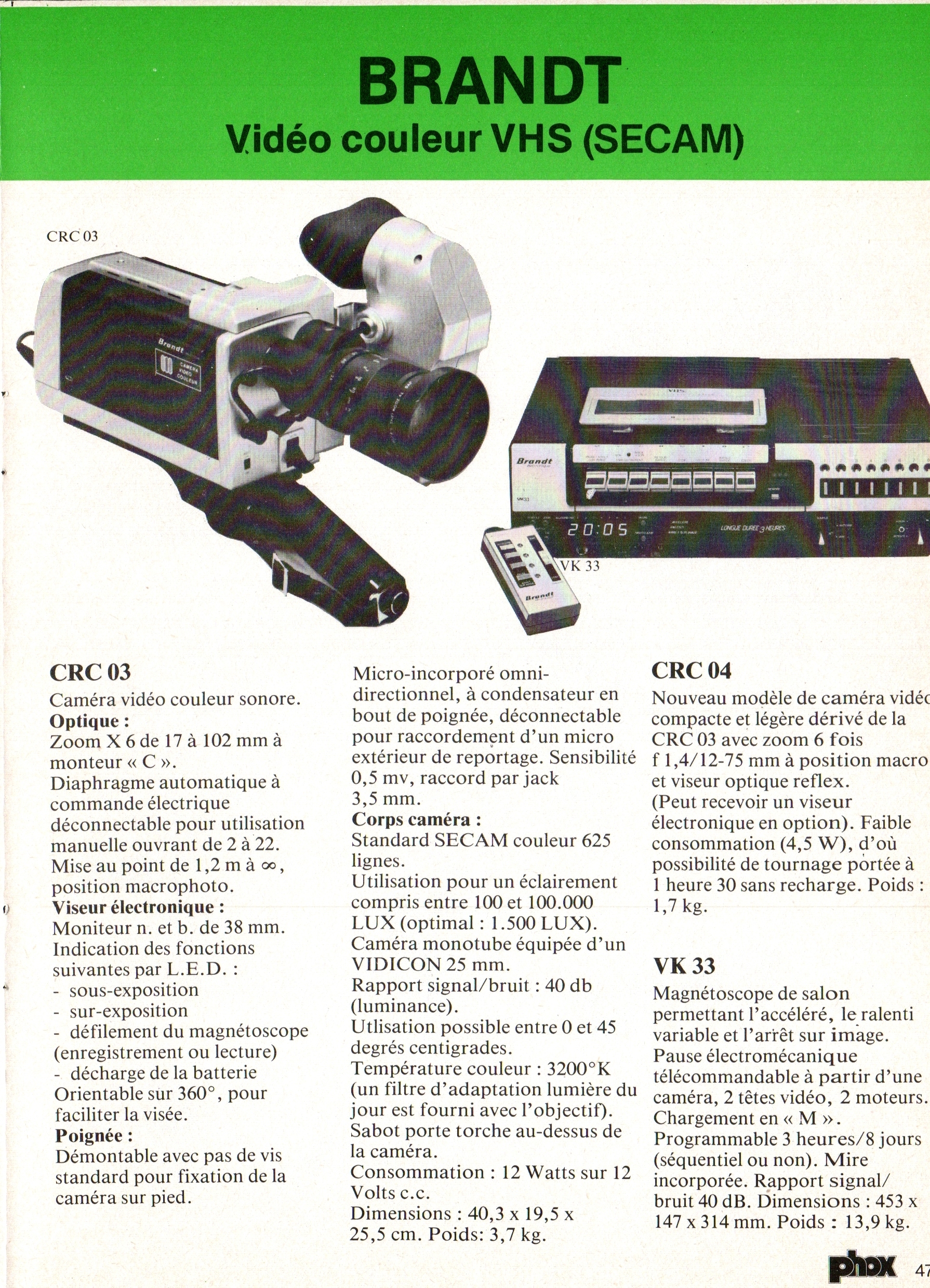 1980 - Phox Dossier-vérité : Les caméras Super 8 et la vidéo